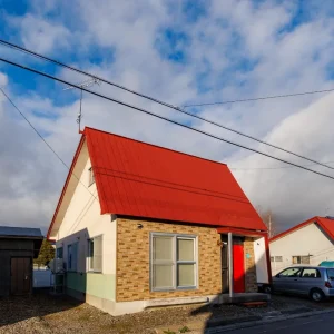 赤い屋根、赤いドアが目印の小さな可愛い小屋。パッチワークの丘など美しい景観の美瑛にぴったりの佇まいです。