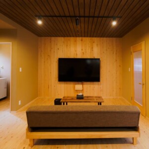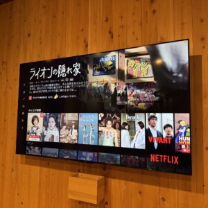 リビングには75インチの大画面テレビが完備されており、映画やネット動画をまるで映画館のような迫力で楽しめます。特別な夜に、贅沢なエンターテインメントをどうぞ。