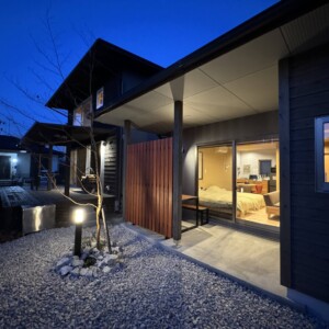 母屋の隣に位置するコンパクトな平屋の離れは、”癒し”をテーマにデザインされています。喧騒から離れ、二人だけのプライベートなひとときを楽しみたい方に理想的な空間です。